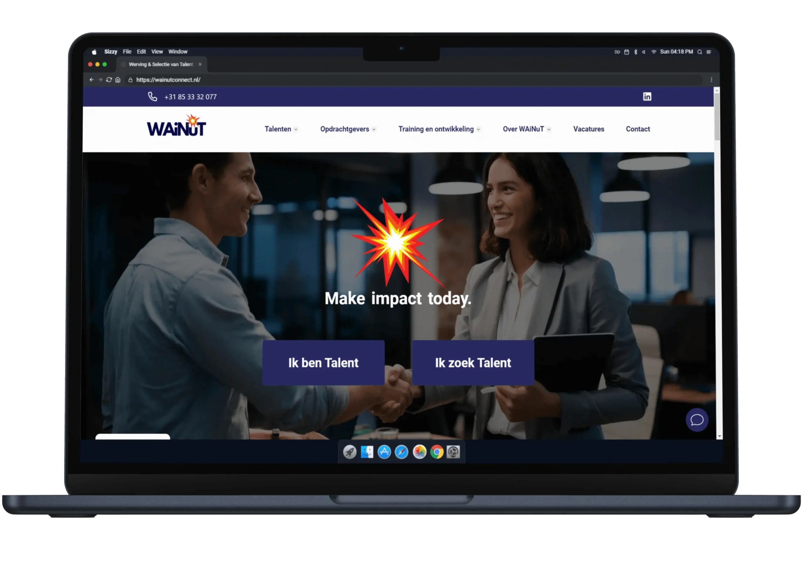 De uitdaging was om een complexe dienst helder te presenteren aan een kritische, zakelijke doelgroep. We hebben een strakke, moderne site ontwikkeld die dient als digitaal visitekaartje en primair contactpunt voor zowel talent als organisaties. Een perfect voorbeeld van hoe een op maat gemaakte oplossing de online ruggengraat van jouw bedrijf kan vormen.